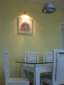 Và tranh được bà Tư và cậu Điền treo ngay cạnh phòng khách, tại bàn ăn – có đèn chiếu sáng nhìn sang hẳn lên