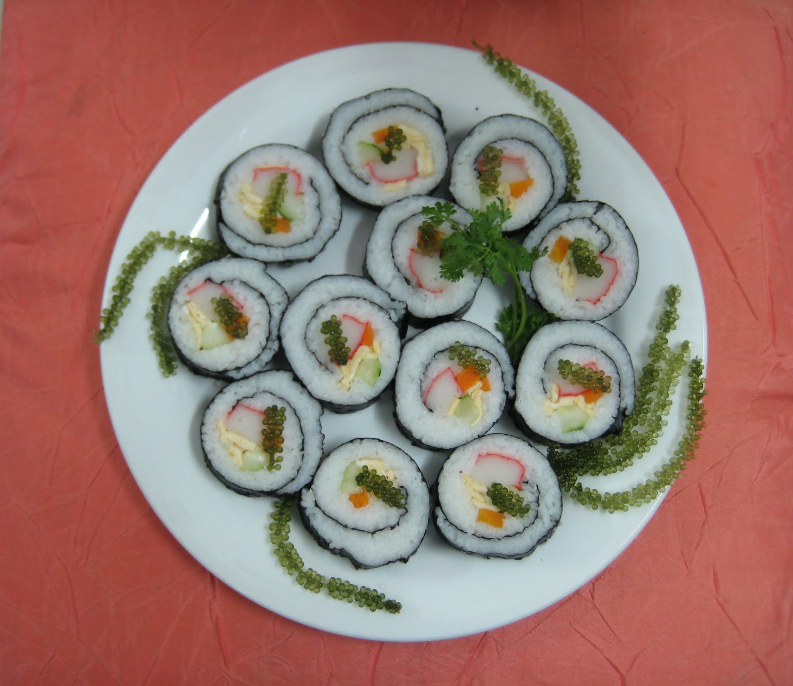 Cả nhà mình ai cũng thích sushi, mẹ làm bao lâu nay rồi nhưng hôm nay hứng chí lên lôi ra chụp hình . Sushi kỳ này mẹ làm nói chung thì rất OK nhưng sáng kiến thành ra tối kiến :-S : nghe bà ngoại nói là rong biển ăn vào có nhiều năng lượng . Thế là mẹ quấn cho 2 lớp rong biển để ăn cho nhiều – cuối cùng thì ăn hơi bị dai . Thôi rút kinh nghiệm cho lần sau vậy