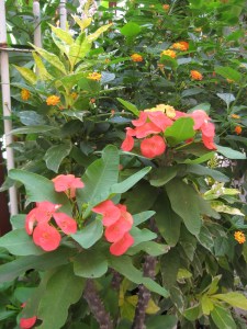 Cây hoa bát tiền cũng chịu khó nở vài hoa, mẹ chỉ trồng được những cây dạng như xương rồng, chuối pháo… những cây nào mà không phải chăm sóc, đầu tư nhiều quá đồng thời phải có sức sống mãnh liệt thì mới có thể sống sót được qua bàn tay của mẹ.