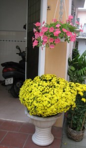 Khuyến mãi cho dì Ba thêm hình chậu cúc mâm xôi trước nhà nè: