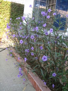 Và khoe với dì Ba hàng bông tím trước cửa nhà ngoại nè: