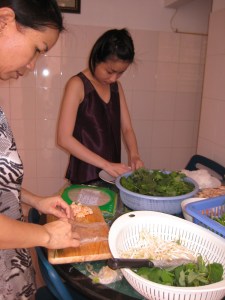 nhà ông Năm phụ trách món gỏi cuốn và món há cảo + món mỳ Ý nữa