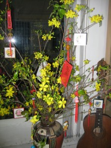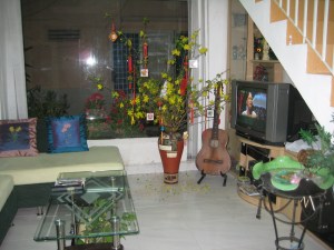 Và cái phòng khách nho nhỏ của gia đình nhỏ bé này đây, năm nào cũng mua mai cành vì ba thích chưng mai cành hơn nên sáng 30 năm nào cũng vậy: ba đảm đương nhiệm vụ lo chạy đi mua mai