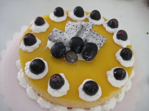 Cuối cùng thì mẹ làm bánh mousse xoài nhưng gặp sự cố ngoài ý muốn: nóng đổ lửa đến nỗi phần cream trang trí rất bị mau tan chảy. Chỉ cần xách bánh ra khỏi tủ lạnh, loay hoay 1 tí thôi là cream chảy ra. Nản lòng quá, mỗi lần ăn cứ phải để chiều tối – trời man mát thì mới dám lấy bánh mà thủng thẳng nhâm nhi =)) . Mà xoài cũng cuối mùa nên mẹ lựa mãi mới được mấy trái ưng ý, chanh dây thì con gái ghét 😦