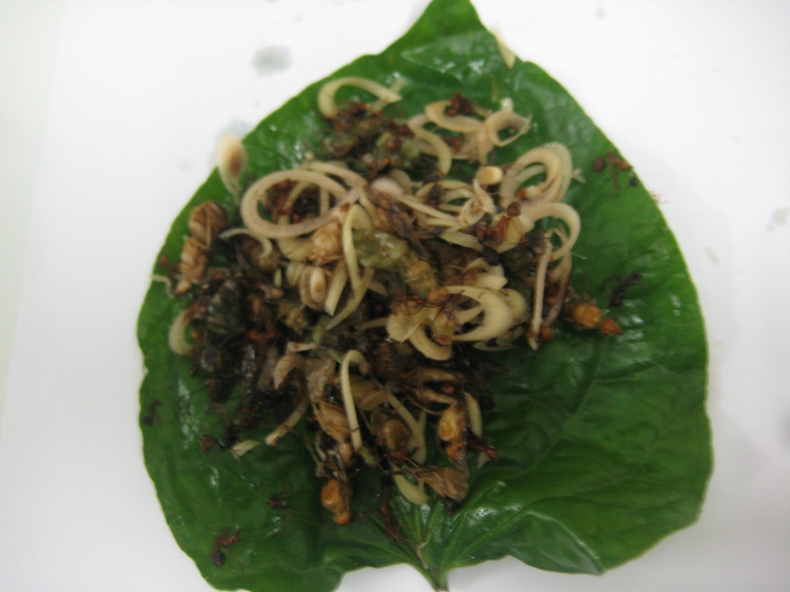 Vâng, show lên cho um sùm 1 tí thôi, còng chuồn chuồn, kiến, bọ cánh cứng …. tui thì chỉ dám nhấp cái con dế thôi, còn mấy con kia thì chống cằm ngắm các em nó ra sao sau khi được chiên dòn. Người Thái thì nói : ăn giống như khoai tây chiên bơ