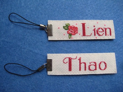 Em thấy con em có 2 cái phone ring  nhỏ xinh và lại có tên được thêu trên đó. Em đòi cho em 1 cái nhưng vì hoa sen không có cái mẫu nào nhỏ hết nên đành chọn hoa hồng. Vẫn là mẫu của BBR cung cấp nhưng chắc thêu không đẹp bằng cô rồi:
