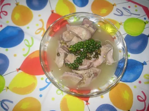 - Dồn vào bên trong bao tử: 1/2 tiêu xanh + 1 tsp tiêu sọ ( để nguyên hột rồi đập hơi dập)
