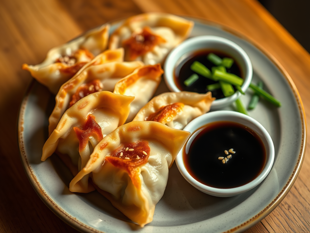 Chảo cạn nước là gyoza cũng chín. Gắp ra dĩa ăn chung với nước chấm pha theo tỉ lệ .