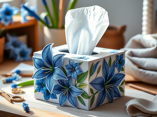 Hộp khăn giấy – hoa Lily xanh